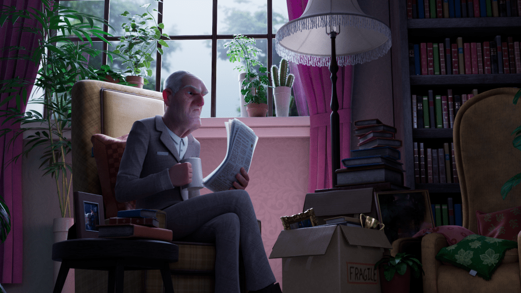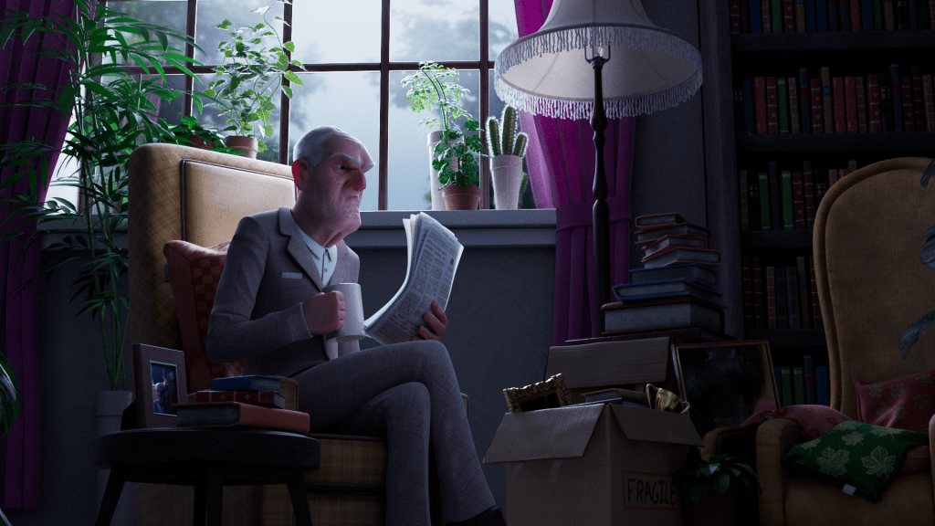 Finally, I Comped in some haze and steam for his Tea that was done in Maya and added in the Depth of Field, Glow, Chromatic Aberration and Vignette In nuke.